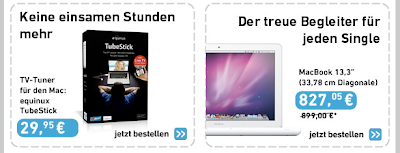 Doch wenn personalisierte Werbung, die meine Daten nimmt und sich nette Angebote für einen durchleuchteten Menschen wie mich ausdenkt, SO aussieht, dann will ich meine Angaben zurück! Wo zum Teufel hab ich mal mitgeteilt, dass ich Single bin? Oder warum wird mir ein MacBook als der “treue Begleiter für jeden Single” angeboten? Warum schickt mir ein Computerversand “die 11 besten Tipps für den Urlaub als Single“? Womit habe ich Hinweise “Das Single-Leben muss nicht teuer sein” verdient? Ist ein Stick zum TV-Empfang über Laptop die einzige Möglichkeit um “Keine einsamen Stunden mehr” erleben zu müssen?