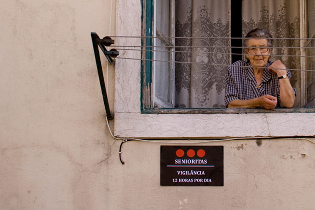 Der totalitäre Überwachungsstaat, den viele mit der flächendeckenden Verbreitung von Videokameras und Google Street View heraufbeschwören, ist längst schon Realität geworden. Ein Fenster, ein Kissen, viel Zeit und eine starke Sehhilfe – mehr brauchen diese Big Aunties nicht, um ganz Lissabon zu überwachen. Was auch immer Ihr Schurken und Schlingel vorhabt zu verbrechen, diese Senioritas sehen Euch. Immer. Überall.