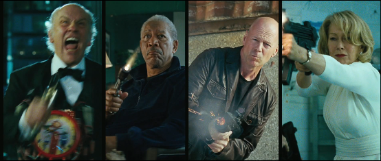 Potzblitz, was für ein Setup! Eine ganze Reihe in Ehren ergrauter Hollywood-Stars (Achtung: Bruce Willis, John Malkovich, Morgan Freeman, Helen Mirren, Mary-Louise Parker, Karl Urban, Brain Cox und Richard Dreyfuss!) spielen eine Riege pensionierter Geheimagenten, die von geheimen Jungspunden wegen irgendwas gejagt werden und deswegen nochmal richtig losperformen. Stichwort: Comicverfilmung, Genreparodie, Selbstironie. Alleine die erste Szene im Trailer: Malkovich in Tarnkleidung!